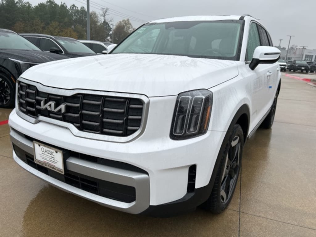 The 2025 Kia Telluride comes with the following features; 3rd row seats: split-bench, 4-Wheel Disc Brakes, 6 Speakers, ABS brakes, Air Conditioning, Alloy wheels, AM/FM radio: SiriusXM, Apple CarPlay & Android Auto, Auto High-beam Headlights, Automatic temperature control, Brake assist, Bumpers: body-color, Carpeted Floor Mats, Delay-off headlights, Driver door bin, Driver vanity mirror, Dual front impact airbags, Dual front side impact airbags, Electronic Stability Control, Emergency communication system: 911 Connect, Exterior Parking Camera Rear, Four wheel independent suspension, Front anti-roll bar, Front Bucket Seats, Front Center Armrest, Front dual zone A/C, Front reading lights, Fully automatic headlights, Heated door mirrors, Heated Front Bucket Seats, Heated front seats, Illuminated entry, Knee airbag, Leather Shift Knob, Leather steering wheel, Low tire pressure warning, Navigation System, Occupant sensing airbag, Outside temperature display, Overhead airbag, Overhead console, Panic alarm, Passenger door bin, Passenger vanity mirror, Power door mirrors, Power driver seat, Power Liftgate, Power moonroof, Power steering, Power windows, Radio data system, Radio: AM/FM Display Audio System, Rear air conditioning, Rear anti-roll bar, Rear audio controls, Rear reading lights, Rear side impact airbag, Rear window defroster, Rear window wiper, Reclining 3rd row seat, Remote keyless entry, Security system, Speed control, Speed-sensing steering, Split folding rear seat, Spoiler, Steering wheel mounted audio controls, SynTex Synthetic Leather Seat Trim, Tachometer, Telescoping steering wheel, Tilt steering wheel, Traction control, Trip computer, Turn signal indicator mirrors, Variably intermittent wipers, and Wheels: 20" x 7.5" Black Finish.