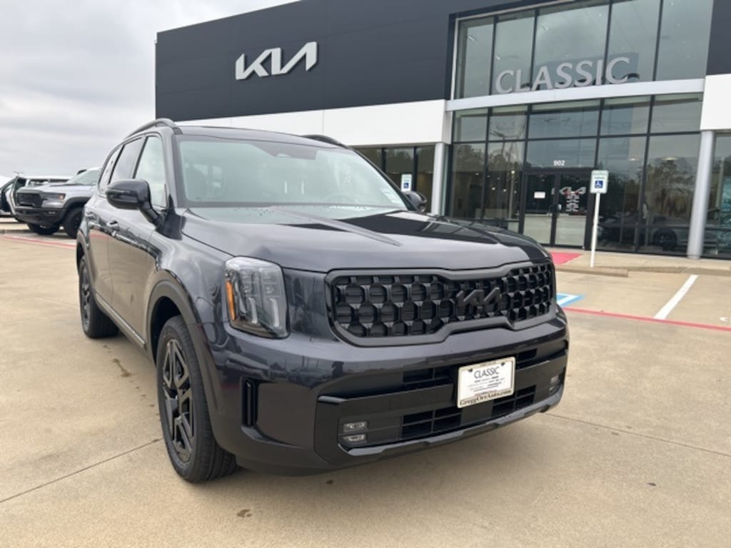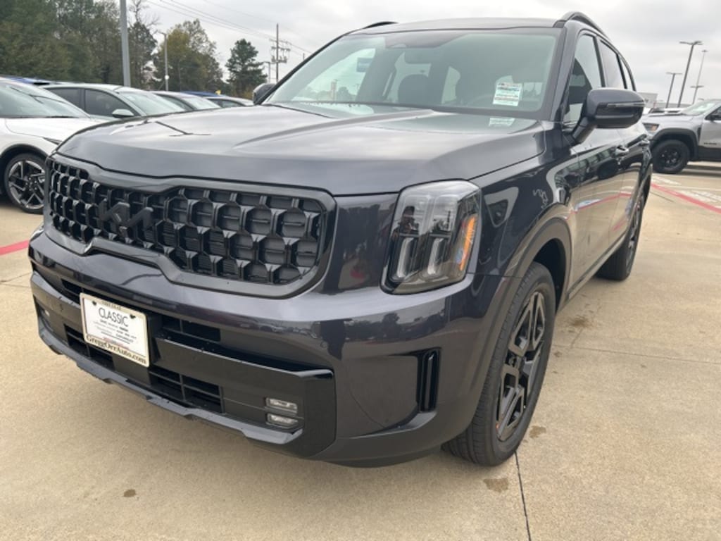 The 2025 Kia Telluride comes with the following features; 10 Speakers, 3rd row seats: split-bench, 4-Wheel Disc Brakes, ABS brakes, Air Conditioning, Alloy wheels, AM/FM radio: SiriusXM, Apple CarPlay & Android Auto, Auto High-beam Headlights, Auto-dimming Rear-View mirror, Auto-leveling suspension, Automatic temperature control, Brake assist, Bumpers: body-color, Cargo Cover, Carpeted Floor Mats, Compass, Delay-off headlights, Driver door bin, Driver vanity mirror, Dual front impact airbags, Dual front side impact airbags, Electronic Stability Control, Emergency communication system: 911 Connect, Exterior Parking Camera Rear, Four wheel independent suspension, Front anti-roll bar, Front Bucket Seats, Front Center Armrest, Front dual zone A/C, Front fog lights, Front reading lights, Fully automatic headlights, Garage door transmitter: HomeLink, harman/kardon® Speakers, Heated & Ventilated Front Bucket Seats, Heated door mirrors, Heated front seats, Heated steering wheel, Illuminated entry, Knee airbag, Leather Seat Trim, Leather Shift Knob, Leather steering wheel, Low tire pressure warning, Memory seat, Navigation System, Occupant sensing airbag, Outside temperature display, Overhead airbag, Overhead console, Panic alarm, Passenger door bin, Passenger vanity mirror, Power door mirrors, Power driver seat, Power Liftgate, Power moonroof, Power passenger seat, Power steering, Power windows, Radio data system, Radio: AM/FM Harman Kardon Audio System, Rear air conditioning, Rear anti-roll bar, Rear audio controls, Rear reading lights, Rear side impact airbag, Rear window defroster, Rear window wiper, Reclining 3rd row seat, Remote keyless entry, Security system, Speed control, Speed-sensing steering, Split folding rear seat, Spoiler, Steering wheel mounted audio controls, Tachometer, Telescoping steering wheel, Tilt steering wheel, Traction control, Trip computer, Turn signal indicator mirrors, Variably intermittent wipers, Ventilated front seats, and Wheels: 20" x 7.5" Black Finish X-LINE Exclusive.