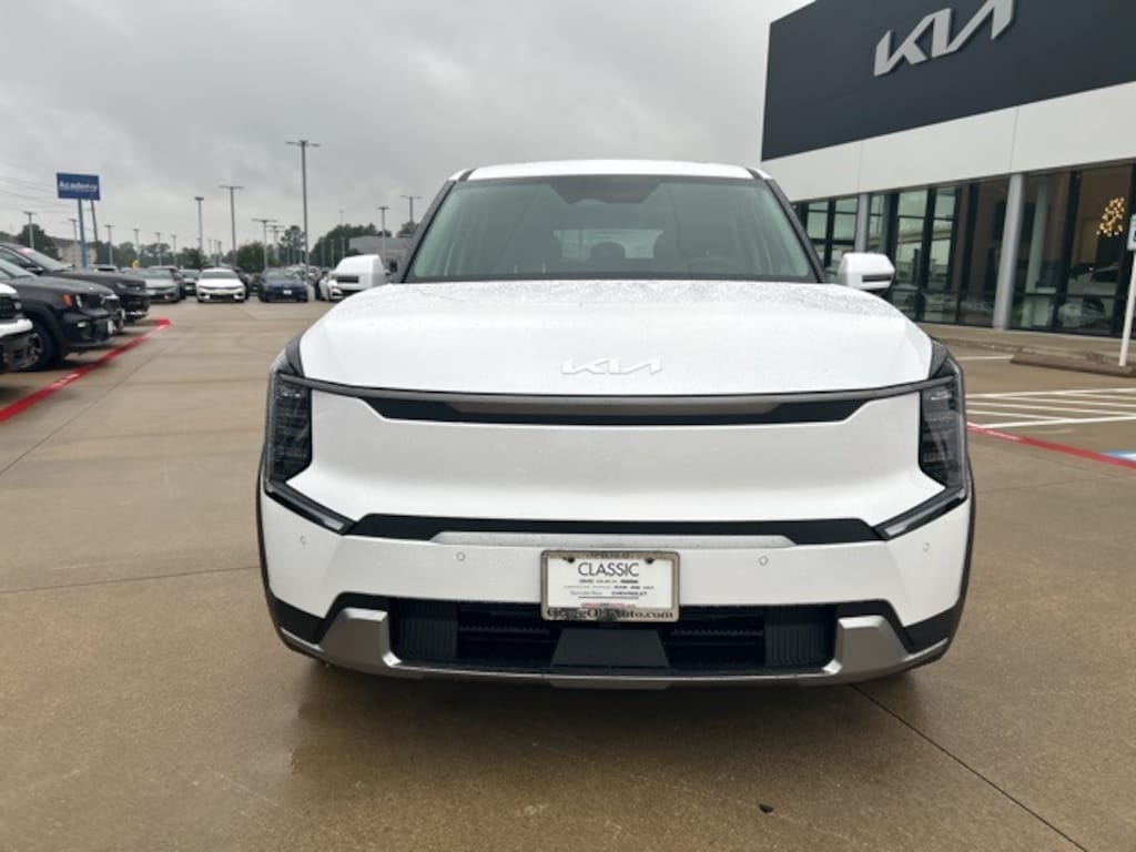 The 2026 Kia EV9 comes with the following features; 3rd row seats: split-bench, 4-Wheel Disc Brakes, 8 Speakers, ABS brakes, Air Conditioning, Alloy wheels, AM/FM radio: SiriusXM, Apple CarPlay & Android Auto, Auto High-beam Headlights, Auto-dimming Rear-View mirror, Automatic temperature control, Brake assist, Bumpers: body-color, Cargo Cover, Carpeted Floor Mat, 7-Passenger, Delay-off headlights, Driver door bin, Driver vanity mirror, Dual front impact airbags, Dual front side impact airbags, Electronic Stability Control, Emergency communication system: 911 Connect, Exterior Parking Camera Rear, Folding Cargo Tray, Four wheel independent suspension, Front anti-roll bar, Front Bucket Seats, Front Center Armrest w/Storage, Front dual zone A/C, Front reading lights, Full SynTex Leather Seat Trim, Fully automatic headlights, Garage door transmitter: HomeLink, Heated & Ventilated Front Bucket Seats, Heated door mirrors, Heated front seats, Illuminated entry, Knee airbag, Low tire pressure warning, Navigation System, Occupant sensing airbag, Outside temperature display, Overhead airbag, Overhead console, Panic alarm, Passenger door bin, Passenger vanity mirror, Power door mirrors, Power driver seat, Power Liftgate, Power moonroof, Power passenger seat, Power steering, Power windows, Radio data system, Radio: AM/FM/HD Radio/SiriusXM, Rain sensing wipers, Rear air conditioning, Rear anti-roll bar, Rear reading lights, Rear seat center armrest, Rear window defroster, Rear window wiper, Reclining 3rd row seat, Remote keyless entry, Security system, Speed control, Speed-sensing steering, Split folding rear seat, Spoiler, Steering wheel mounted audio controls, Telescoping steering wheel, Tilt steering wheel, Traction control, Trip computer, Turn signal indicator mirrors, Variably intermittent wipers, Ventilated front seats, and Wheels: 19" Black & Machined Finished Alloy.
