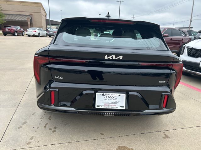 The 2026 Kia K4 comes with the following features; 4-Wheel Disc Brakes, 8 Speakers, ABS brakes, Air Conditioning, Alloy wheels, AM/FM radio: SiriusXM, Apple CarPlay & Android Auto, Auto High-beam Headlights, Automatic temperature control, Brake assist, Bumpers: body-color, Delay-off headlights, Driver door bin, Driver vanity mirror, Dual front impact airbags, Dual front side impact airbags, Electronic Stability Control, Emergency communication system: 911 Connect, Four wheel independent suspension, Front anti-roll bar, Front Bucket Seats, Front Center Armrest, Front dual zone A/C, Front fog lights, Front Heated Bucket Seats, Front reading lights, Fully automatic headlights, harman/kardon® Speakers, Heated door mirrors, Heated front seats, Illuminated entry, Low tire pressure warning, Navigation System, Occupant sensing airbag, Outside temperature display, Overhead airbag, Overhead console, Panic alarm, Passenger door bin, Passenger vanity mirror, Power door mirrors, Power driver seat, Power moonroof, Power steering, Power windows, Radio data system, Radio: 12.3" Touchscreen Audio Display with Navigation, Rear anti-roll bar, Rear seat center armrest, Rear side impact airbag, Rear window defroster, Rear window wiper, Remote keyless entry, Security system, Speed control, Split folding rear seat, Spoiler, Sport steering wheel, Steering wheel mounted audio controls, SynTex Artificial Leather Seat Trim, Tachometer, Telescoping steering wheel, Tilt steering wheel, Traction control, Trip computer, Turn signal indicator mirrors, Variably intermittent wipers, and Wheels: 18" x 8.0J Black Alloy.