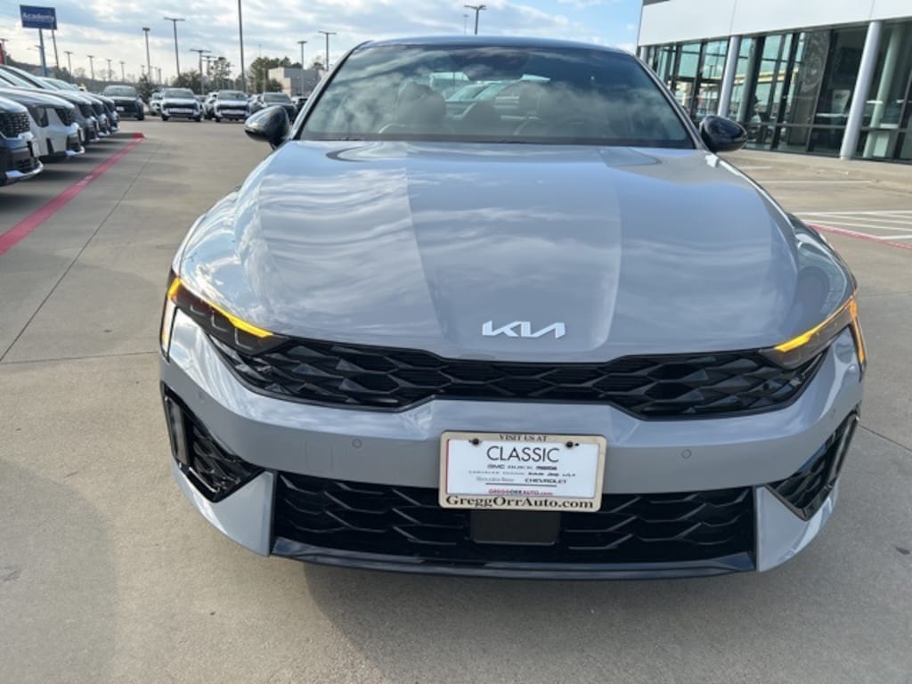 The 2026 Kia K5 comes with the following features; GT-Line Premium Package (Active Sound Design, Bose Premium Audio, LED Interior Lighting, Panoramic Sunroof, and Wheels: 18" x 7.5J Unique Gloss Black Alloy), 4-Wheel Disc Brakes, 6 Speakers, ABS brakes, Air Conditioning, Alloy wheels, AM/FM radio: SiriusXM, Auto High-beam Headlights, Automatic temperature control, Brake assist, Bumpers: body-color, Carpeted Floor Mats, Delay-off headlights, Driver door bin, Driver vanity mirror, Dual front impact airbags, Dual front side impact airbags, Electronic Stability Control, Emergency communication system: Kia Connect (includes 1 year free trial), Four wheel independent suspension, Front anti-roll bar, Front Bucket Seats, Front Center Armrest, Front dual zone A/C, Front fog lights, Front reading lights, Fully automatic headlights, Heated door mirrors, Heated Front Bucket Seats, Heated front seats, Illuminated entry, Knee airbag, Leather Shift Knob, Leather steering wheel, Low tire pressure warning, Navigation System, Occupant sensing airbag, Outside temperature display, Overhead airbag, Overhead console, Panic alarm, Passenger door bin, Passenger vanity mirror, Power door mirrors, Power driver seat, Power steering, Power windows, Radio data system, Radio: AM/FM Audio System, Rear anti-roll bar, Rear seat center armrest, Rear side impact airbag, Rear window defroster, Remote keyless entry, Security system, Speed control, Speed-sensing steering, Split folding rear seat, Sport steering wheel, Steering wheel mounted audio controls, Tachometer, Telescoping steering wheel, Tilt steering wheel, Traction control, Trip computer, Turn signal indicator mirrors, Variably intermittent wipers, and Wheels: 18" x 7.5J Gloss Black Machined Finish Alloy.