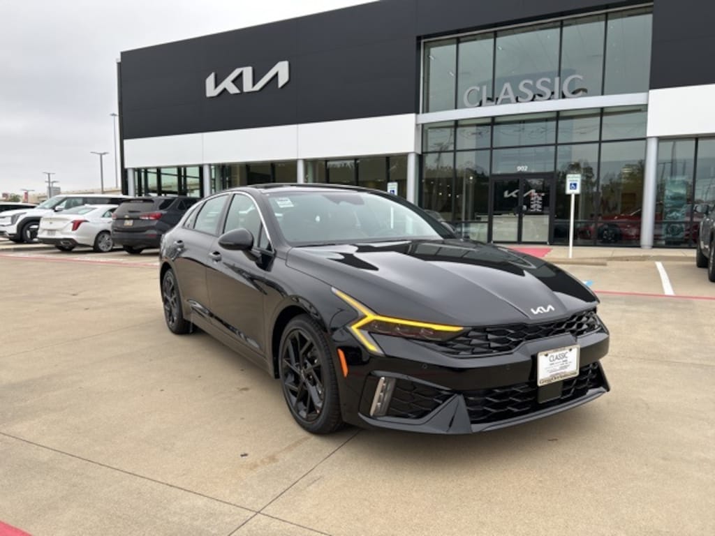 The 2026 Kia K5 comes with the following features; GT-Line Premium Package (Active Sound Design, Bose Premium Audio, LED Interior Lighting, Panoramic Sunroof, and Wheels: 18" x 7.5J Unique Gloss Black Alloy), GT-Line Red Interior Package (SynTex Seat Trim), 4-Wheel Disc Brakes, 6 Speakers, ABS brakes, Air Conditioning, Alloy wheels, AM/FM radio: SiriusXM, Auto High-beam Headlights, Automatic temperature control, Brake assist, Bumpers: body-color, Carpeted Floor Mats, Delay-off headlights, Driver door bin, Driver vanity mirror, Dual front impact airbags, Dual front side impact airbags, Electronic Stability Control, Emergency communication system: Kia Connect (includes 1 year free trial), Four wheel independent suspension, Front anti-roll bar, Front Bucket Seats, Front Center Armrest, Front dual zone A/C, Front fog lights, Front reading lights, Fully automatic headlights, Heated door mirrors, Heated Front Bucket Seats, Heated front seats, Heated steering wheel, Illuminated entry, Knee airbag, Leather Shift Knob, Leather steering wheel, Low tire pressure warning, Navigation System, Occupant sensing airbag, Outside temperature display, Overhead airbag, Overhead console, Panic alarm, Passenger door bin, Passenger vanity mirror, Power door mirrors, Power driver seat, Power steering, Power windows, Radio data system, Radio: AM/FM Audio System, Rear anti-roll bar, Rear seat center armrest, Rear side impact airbag, Rear window defroster, Remote keyless entry, Security system, Speed control, Speed-sensing steering, Split folding rear seat, Sport steering wheel, Steering wheel mounted audio controls, Tachometer, Telescoping steering wheel, Tilt steering wheel, Traction control, Trip computer, Turn signal indicator mirrors, Variably intermittent wipers, and Wheels: 18" x 7.5J Gloss Black Machined Finish Alloy.