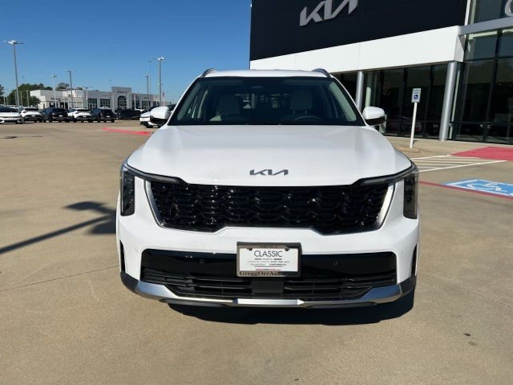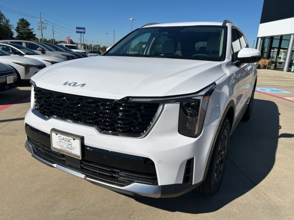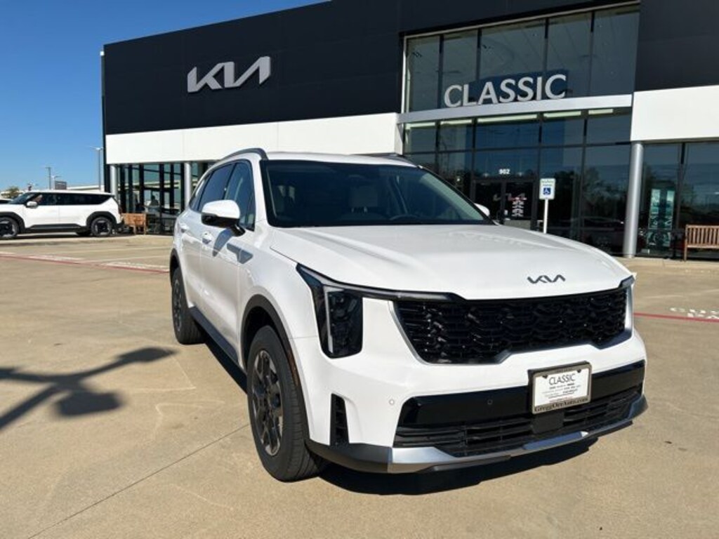 The 2026 Kia Sorento comes with the following features; AWD, 3rd row seats: split-bench, 4-Wheel Disc Brakes, 6 Speakers, ABS brakes, Air Conditioning, Alloy wheels, AM/FM radio: SiriusXM, Apple CarPlay & Android Auto, Auto High-beam Headlights, Automatic temperature control, Brake assist, Bumpers: body-color, Carpeted Floor Mats, Delay-off headlights, Driver door bin, Driver vanity mirror, Dual front impact airbags, Dual front side impact airbags, Electronic Stability Control, Emergency communication system: 911 Connect, Exterior Parking Camera Rear, Four wheel independent suspension, Front anti-roll bar, Front Bucket Seats, Front Center Armrest, Front dual zone A/C, Front reading lights, Fully automatic headlights, Heated door mirrors, Heated Front Bucket Seats, Heated front seats, Illuminated entry, Knee airbag, Leather Shift Knob, Leather steering wheel, Low tire pressure warning, Occupant sensing airbag, Outside temperature display, Overhead airbag, Overhead console, Panic alarm, Passenger door bin, Passenger vanity mirror, Power door mirrors, Power driver seat, Power steering, Power windows, Radio data system, Radio: AM/FM Standard Sound System, Rear anti-roll bar, Rear reading lights, Rear seat center armrest, Rear side impact airbag, Rear window defroster, Rear window wiper, Remote keyless entry, Security system, Speed control, Speed-sensing steering, Split folding rear seat, Spoiler, Steering wheel mounted audio controls, SynTex Artificial Leather Seat Trim, Tachometer, Telescoping steering wheel, Tilt steering wheel, Traction control, Trip computer, Turn signal indicator mirrors, Variably intermittent wipers, and Wheels: 18" Gloss Black Alloy. AWD.