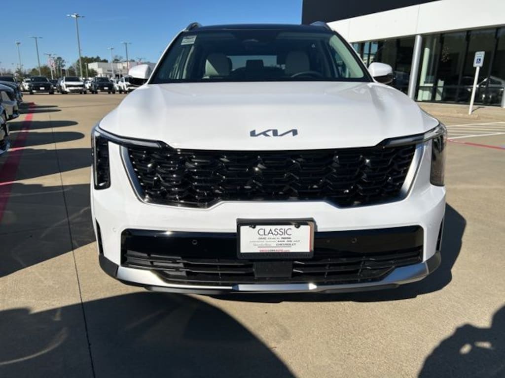 The 2026 Kia Sorento comes with the following features; S Panoramic Sunroof Package (Full-Length One-Touch Panoroof with Sliding Sunshade and LED Interior Lighting), 3rd row seats: split-bench, 4-Wheel Disc Brakes, 6 Speakers, ABS brakes, Air Conditioning, Alloy wheels, AM/FM radio: SiriusXM, Apple CarPlay & Android Auto, Auto High-beam Headlights, Automatic temperature control, Brake assist, Bumpers: body-color, Carpeted Floor Mats, Delay-off headlights, Driver door bin, Driver vanity mirror, Dual front impact airbags, Dual front side impact airbags, Electronic Stability Control, Emergency communication system: 911 Connect, Exterior Parking Camera Rear, Four wheel independent suspension, Front anti-roll bar, Front Bucket Seats, Front Center Armrest, Front dual zone A/C, Front reading lights, Fully automatic headlights, Heated door mirrors, Heated Front Bucket Seats, Heated front seats, Illuminated entry, Knee airbag, Leather Shift Knob, Leather steering wheel, Low tire pressure warning, Occupant sensing airbag, Outside temperature display, Overhead airbag, Overhead console, Panic alarm, Passenger door bin, Passenger vanity mirror, Power door mirrors, Power driver seat, Power steering, Power windows, Radio data system, Radio: AM/FM Standard Sound System, Rear anti-roll bar, Rear reading lights, Rear seat center armrest, Rear side impact airbag, Rear window defroster, Rear window wiper, Remote keyless entry, Security system, Speed control, Speed-sensing steering, Split folding rear seat, Spoiler, Steering wheel mounted audio controls, SynTex Artificial Leather Seat Trim, Tachometer, Telescoping steering wheel, Tilt steering wheel, Traction control, Trip computer, Turn signal indicator mirrors, Variably intermittent wipers, and Wheels: 18" Gloss Black Alloy.