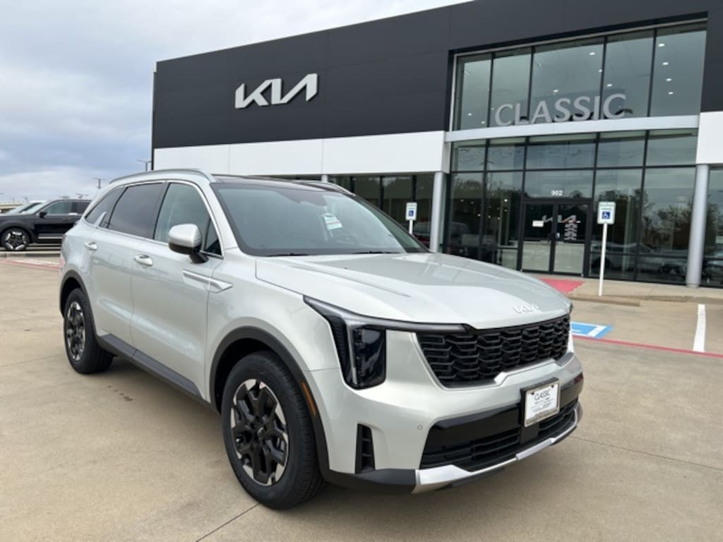 The 2026 Kia Sorento comes with the following features; S Panoramic Sunroof Package (Full-Length One-Touch Panoroof w/Sliding Sunshade and LED Interior Lighting), 3rd row seats: split-bench, 4-Wheel Disc Brakes, 6 Speakers, ABS brakes, Air Conditioning, Alloy wheels, AM/FM radio: SiriusXM, Apple CarPlay & Android Auto, Auto High-beam Headlights, Automatic temperature control, Brake assist, Bumpers: body-color, Carpeted Floor Mats, Delay-off headlights, Driver door bin, Driver vanity mirror, Dual front impact airbags, Dual front side impact airbags, Electronic Stability Control, Emergency communication system: 911 Connect, Exterior Parking Camera Rear, Four wheel independent suspension, Front anti-roll bar, Front Bucket Seats, Front Center Armrest, Front dual zone A/C, Front reading lights, Fully automatic headlights, Heated door mirrors, Heated Front Bucket Seats, Heated front seats, Illuminated entry, Knee airbag, Leather Shift Knob, Leather steering wheel, Low tire pressure warning, Occupant sensing airbag, Outside temperature display, Overhead airbag, Overhead console, Panic alarm, Passenger door bin, Passenger vanity mirror, Power door mirrors, Power driver seat, Power steering, Power windows, Radio data system, Radio: AM/FM Standard Sound System, Rear anti-roll bar, Rear reading lights, Rear seat center armrest, Rear side impact airbag, Rear window defroster, Rear window wiper, Remote keyless entry, Security system, Speed control, Speed-sensing steering, Split folding rear seat, Spoiler, Steering wheel mounted audio controls, SynTex Artificial Leather Seat Trim, Tachometer, Telescoping steering wheel, Tilt steering wheel, Traction control, Trip computer, Turn signal indicator mirrors, Variably intermittent wipers, and Wheels: 18" Gloss Black Alloy.