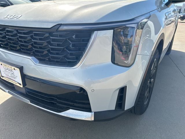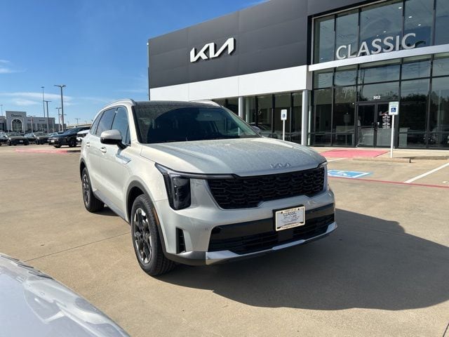 The 2026 Kia Sorento comes with the following features; S Panoramic Sunroof Package (Full-Length One-Touch Panoroof with Sliding Sunshade and LED Interior Lighting), 3rd row seats: split-bench, 4-Wheel Disc Brakes, 6 Speakers, ABS brakes, Air Conditioning, Alloy wheels, AM/FM radio: SiriusXM, Apple CarPlay & Android Auto, Auto High-beam Headlights, Automatic temperature control, Brake assist, Bumpers: body-color, Carpeted Floor Mats, Delay-off headlights, Driver door bin, Driver vanity mirror, Dual front impact airbags, Dual front side impact airbags, Electronic Stability Control, Emergency communication system: 911 Connect, Exterior Parking Camera Rear, Four wheel independent suspension, Front anti-roll bar, Front Bucket Seats, Front Center Armrest, Front dual zone A/C, Front reading lights, Fully automatic headlights, Heated door mirrors, Heated Front Bucket Seats, Heated front seats, Illuminated entry, Knee airbag, Leather Shift Knob, Leather steering wheel, Low tire pressure warning, Occupant sensing airbag, Outside temperature display, Overhead airbag, Overhead console, Panic alarm, Passenger door bin, Passenger vanity mirror, Power door mirrors, Power driver seat, Power steering, Power windows, Radio data system, Radio: AM/FM Standard Sound System, Rear anti-roll bar, Rear reading lights, Rear seat center armrest, Rear side impact airbag, Rear window defroster, Rear window wiper, Remote keyless entry, Security system, Speed control, Speed-sensing steering, Split folding rear seat, Spoiler, Steering wheel mounted audio controls, SynTex Artificial Leather Seat Trim, Tachometer, Telescoping steering wheel, Tilt steering wheel, Traction control, Trip computer, Turn signal indicator mirrors, Variably intermittent wipers, and Wheels: 18" Gloss Black Alloy.