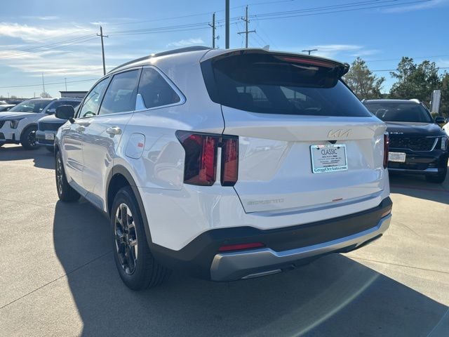 The 2026 Kia Sorento comes with the following features; 3rd row seats: split-bench, 4-Wheel Disc Brakes, 6 Speakers, ABS brakes, Air Conditioning, Alloy wheels, AM/FM radio: SiriusXM, Apple CarPlay & Android Auto, Auto High-beam Headlights, Automatic temperature control, Brake assist, Bumpers: body-color, Carpeted Floor Mats, Delay-off headlights, Driver door bin, Driver vanity mirror, Dual front impact airbags, Dual front side impact airbags, Electronic Stability Control, Emergency communication system: 911 Connect, Exterior Parking Camera Rear, Four wheel independent suspension, Front anti-roll bar, Front Bucket Seats, Front Center Armrest, Front dual zone A/C, Front reading lights, Fully automatic headlights, Heated door mirrors, Heated Front Bucket Seats, Heated front seats, Illuminated entry, Knee airbag, Leather Shift Knob, Leather steering wheel, Low tire pressure warning, Occupant sensing airbag, Outside temperature display, Overhead airbag, Overhead console, Panic alarm, Passenger door bin, Passenger vanity mirror, Power door mirrors, Power driver seat, Power steering, Power windows, Radio data system, Radio: AM/FM Standard Sound System, Rear anti-roll bar, Rear reading lights, Rear seat center armrest, Rear side impact airbag, Rear window defroster, Rear window wiper, Remote keyless entry, Security system, Speed control, Speed-sensing steering, Split folding rear seat, Spoiler, Steering wheel mounted audio controls, SynTex Artificial Leather Seat Trim, Tachometer, Telescoping steering wheel, Tilt steering wheel, Traction control, Trip computer, Turn signal indicator mirrors, Variably intermittent wipers, and Wheels: 18" Gloss Black Alloy.