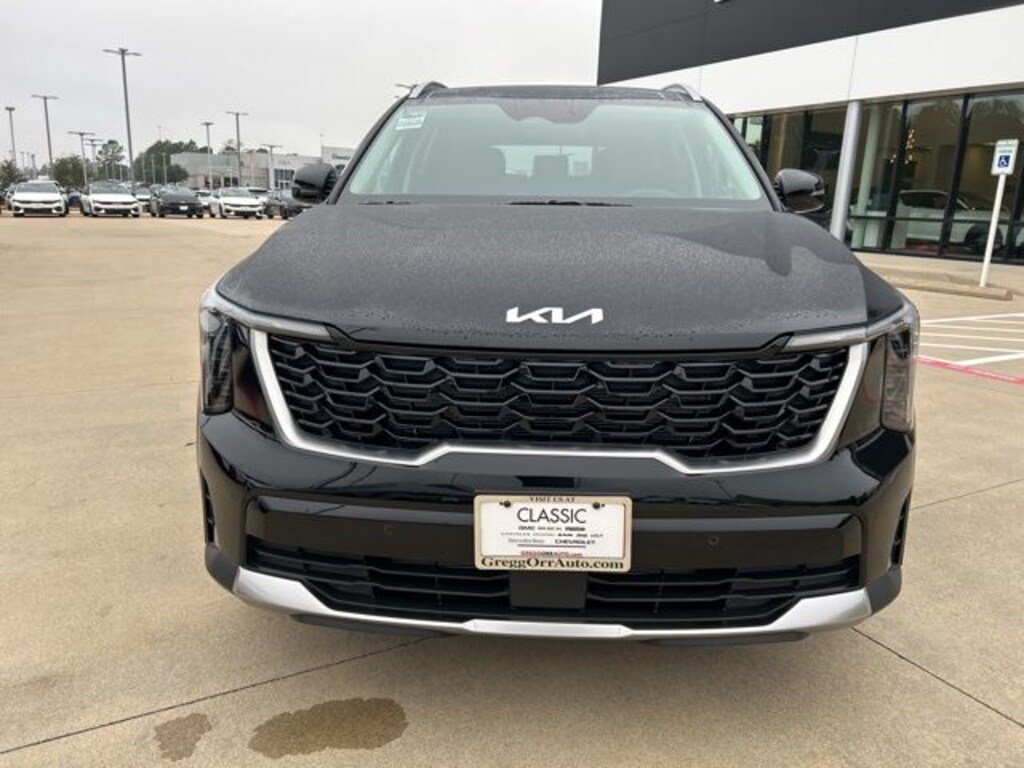 The 2026 Kia Sorento comes with the following features; S Panoramic Sunroof Package (Full-Length One-Touch Panoroof with Sliding Sunshade and LED Interior Lighting), 3rd row seats: split-bench, 4-Wheel Disc Brakes, 6 Speakers, ABS brakes, Air Conditioning, Alloy wheels, AM/FM radio: SiriusXM, Apple CarPlay & Android Auto, Auto High-beam Headlights, Automatic temperature control, Brake assist, Bumpers: body-color, Carpeted Floor Mats, Delay-off headlights, Driver door bin, Driver vanity mirror, Dual front impact airbags, Dual front side impact airbags, Electronic Stability Control, Emergency communication system: 911 Connect, Exterior Parking Camera Rear, Four wheel independent suspension, Front anti-roll bar, Front Bucket Seats, Front Center Armrest, Front dual zone A/C, Front reading lights, Fully automatic headlights, Heated door mirrors, Heated Front Bucket Seats, Heated front seats, Illuminated entry, Knee airbag, Leather Shift Knob, Leather steering wheel, Low tire pressure warning, Occupant sensing airbag, Outside temperature display, Overhead airbag, Overhead console, Panic alarm, Passenger door bin, Passenger vanity mirror, Power door mirrors, Power driver seat, Power steering, Power windows, Radio data system, Radio: AM/FM Standard Sound System, Rear anti-roll bar, Rear reading lights, Rear seat center armrest, Rear side impact airbag, Rear window defroster, Rear window wiper, Remote keyless entry, Security system, Speed control, Speed-sensing steering, Split folding rear seat, Spoiler, Steering wheel mounted audio controls, SynTex Artificial Leather Seat Trim, Tachometer, Telescoping steering wheel, Tilt steering wheel, Traction control, Trip computer, Turn signal indicator mirrors, Variably intermittent wipers, and Wheels: 18" Gloss Black Alloy.