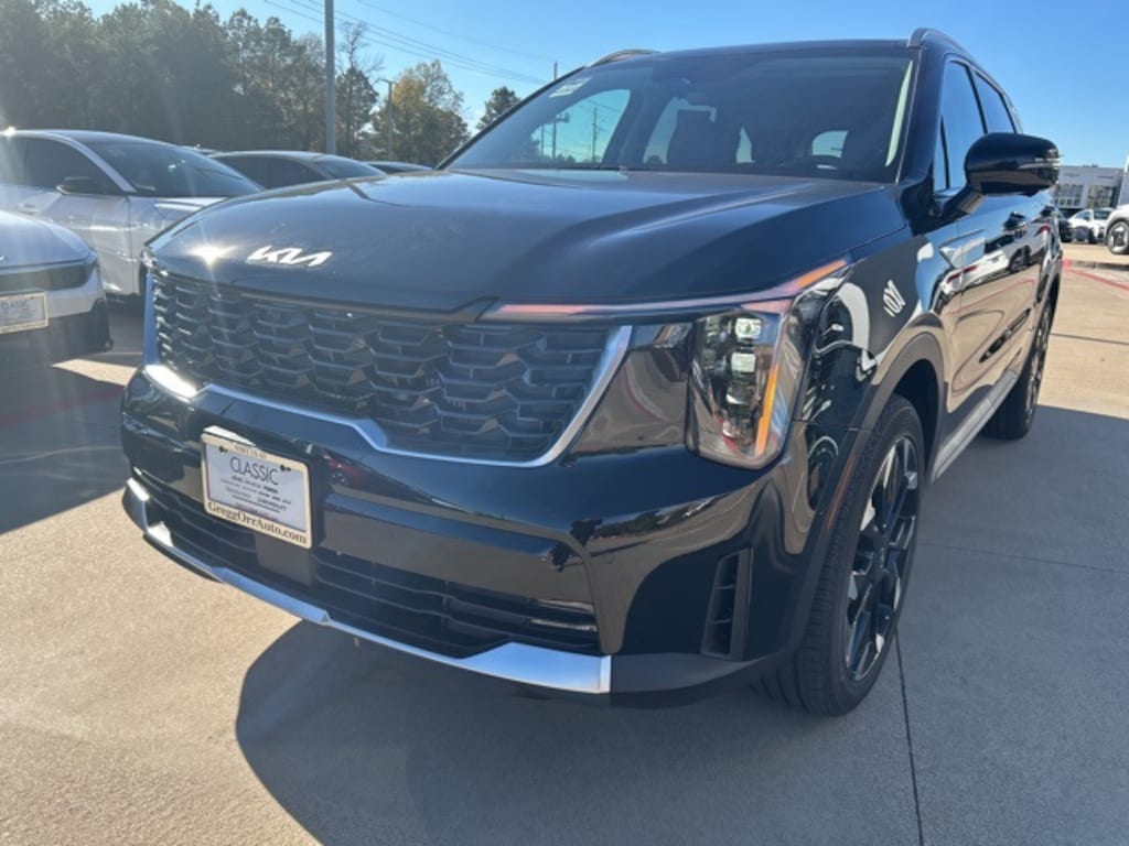 The 2026 Kia Sorento comes with the following features; 12 Speakers, 3rd row seats: split-bench, 4-Wheel Disc Brakes, ABS brakes, Air Conditioning, Alloy wheels, AM/FM radio: SiriusXM, Apple CarPlay & Android Auto, Auto High-beam Headlights, Auto-dimming Rear-View mirror, Automatic temperature control, Brake assist, Bumpers: body-color, Carpeted Floor Mats, Delay-off headlights, Driver door bin, Driver vanity mirror, Dual front impact airbags, Dual front side impact airbags, Electronic Stability Control, Emergency communication system: 911 Connect, Exterior Parking Camera Rear, Four wheel independent suspension, Front anti-roll bar, Front Bucket Seats, Front Center Armrest, Front dual zone A/C, Front fog lights, Front reading lights, Fully automatic headlights, Garage door transmitter: HomeLink, Heated and Ventilated Front Bucket Seats, Heated door mirrors, Heated front seats, Heated steering wheel, Illuminated entry, Knee airbag, Leather Shift Knob, Leather steering wheel, Low tire pressure warning, Navigation System, Occupant sensing airbag, Outside temperature display, Overhead airbag, Overhead console, Panic alarm, Passenger door bin, Passenger vanity mirror, Power door mirrors, Power driver seat, Power Liftgate, Power moonroof, Power passenger seat, Power steering, Power windows, Radio data system, Radio: AM/FM Bose Premium Audio System, Rain sensing wipers, Rear anti-roll bar, Rear reading lights, Rear side impact airbag, Rear window defroster, Rear window wiper, Remote keyless entry, Security system, Speed control, Speed-sensing steering, Split folding rear seat, Spoiler, Steering wheel mounted audio controls, SynTex Artificial Leather Seat Trim, Tachometer, Telescoping steering wheel, Tilt steering wheel, Traction control, Trip computer, Turn signal indicator mirrors, Variably intermittent wipers, Ventilated front seats, and Wheels: 20" Machine-Finished Gloss Black Alloy.