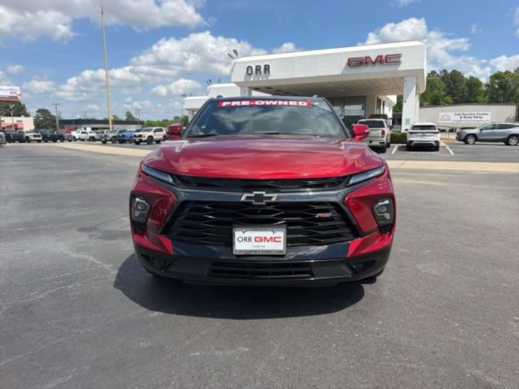 This 2023 Chevrolet Blazer comes equipped with Driver Confidence II Package (Adaptive Cruise Control, Enhanced Automatic Emergency Braking, HD Surround Vision, Rear Camera Mirror, Safety Alert Seat, and Rear Camera Mirror Washer), Preferred Equipment Group 1RS (Heated Steering Wheel and Rear Park Assist w/Audible Warning), Trailering Equipment (170 Amp Alternator, Heavy-Duty Cooling System, Hitch Guidance, and Hitch View), Navigation System, 3.49 Final Drive Axle Ratio, 4-Wheel Disc Brakes, 6-Way Power Front Passenger Seat Adjuster, 8 Speakers, 8-Way Power Driver Seat Adjuster, ABS brakes, Air Conditioning, Alloy wheels, AM/FM radio: SiriusXM with 360L, Apple CarPlay/Android Auto, Auto High-beam Headlights, Auto-dimming door mirrors, Auto-dimming Rear-View mirror, Automatic temperature control, Black 2-Tone Roof, Bose Premium 8-Speaker Audio System Feature, Brake assist, Bumpers: body-color, Child-Seat-Sensing Airbag, Compass, Delay-off headlights, Driver door bin, Driver vanity mirror, Dual front impact airbags, Dual front side impact airbags, Electronic Stability Control, Emergency communication system: OnStar and Chevrolet connected services capable, Four wheel independent suspension, Front anti-roll bar, Front Bucket Seats, Front Center Armrest, Front dual zone A/C, Front reading lights, Fully automatic headlights, Garage door transmitter, Heated door mirrors, Heated Driver & Front Passenger Seats, Heated front seats, Heated steering wheel, Illuminated entry, Knee airbag, Leather Shift Knob, Low tire pressure warning, Not Equipped w/Rear Park Assist, Occupant sensing airbag, Outside temperature display, Overhead airbag, Overhead console, Panic alarm, Passenger door bin, Passenger vanity mirror, Perforated Leather-Appointed Seat Trim, Power door mirrors, Power Driver Lumbar Control, Power driver seat, Power Liftgate, Power Panoramic Tilt-Sliding Sunroof, Power passenger seat, Power steering, Power windows, Premium audio system: Chevrolet Infotainment 3 Premium, Radio data system, Radio: Chevrolet Infotainment 3 Premium System, Rear anti-roll bar, Rear reading lights, Rear seat center armrest, Rear window defroster, Rear window wiper, Remote keyless entry, Ride & Handling Suspension, Security system, SiriusXM w/360L, Speed control, Speed-sensing steering, Split folding rear seat, Spoiler, Steering wheel mounted audio controls, Tachometer, Telescoping steering wheel, Tilt steering wheel, Traction control, Trip computer, Turn signal indicator mirrors, Variably intermittent wipers, Voltmeter, and Wheels: 20 Technical Gray Aluminum. CARFAX One-Owner. 19/27 City/Highway MPG Carfax no accidents, 170 Amp Alternator, Adaptive Cruise Control, Driver Confidence II Package, Enhanced Automatic Emergency Braking, HD Surround Vision, Heated Steering Wheel, Heavy-Duty Cooling System, Hitch Guidance, Hitch View, Navigation System, Preferred Equipment Group 1RS, Rear Camera Mirror, Rear Park Assist w/Audible Warning, Safety Alert Seat, Trailering Equipment.