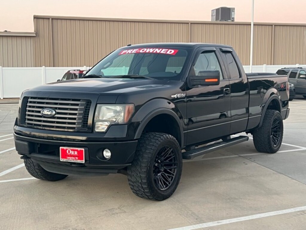 This 2011 Ford F-150 comes equipped with FX Plus Package, GVWR: 7,200 lbs Payload Package, Order Code 505A, 5.0L V8 FFV, 4WD, 18" Machined-Aluminum Wheels, 4 Speakers, 4-Wheel Disc Brakes, 6" Painted Angular Running Boards, ABS brakes, Air Conditioning, Alloy wheels, AM/FM radio: SIRIUS, AM/FM Stereo/Clock/Single CD, Auto-dimming Rear-View mirror, Bumpers: body-color, CD player, Compass, Delay-off headlights, Driver door bin, Driver vanity mirror, Dual front impact airbags, Dual front side impact airbags, Electronic Locking w/3.73 Axle Ratio, Electronic Stability Control, Front anti-roll bar, Front Bucket Seats, Front Center Armrest, Front fog lights, Front reading lights, Front wheel independent suspension, Fully automatic headlights, Illuminated entry, Leather Shift Knob, Leather steering wheel, Low tire pressure warning, Occupant sensing airbag, Outside temperature display, Overhead airbag, Overhead console, Overhead Console w/Single Storage Bin, Panic alarm, Passenger door bin, Passenger vanity mirror, Power door mirrors, Power driver seat, Power Moonroof, Power steering, Power windows, Radio data system, Rear step bumper, Rear window defroster, Remote keyless entry, Security system, SIRIUS Integrated Satellite Radio, Speed control, Speed-sensing steering, Split folding rear seat, Sport Cloth Bucket Seats, Steering wheel mounted audio controls, Tachometer, Telescoping steering wheel, Tilt steering wheel, Traction control, Trailer Brake Controller, Trip computer, and Variably intermittent wipers. 5.0L V8 FFV, 4WD.