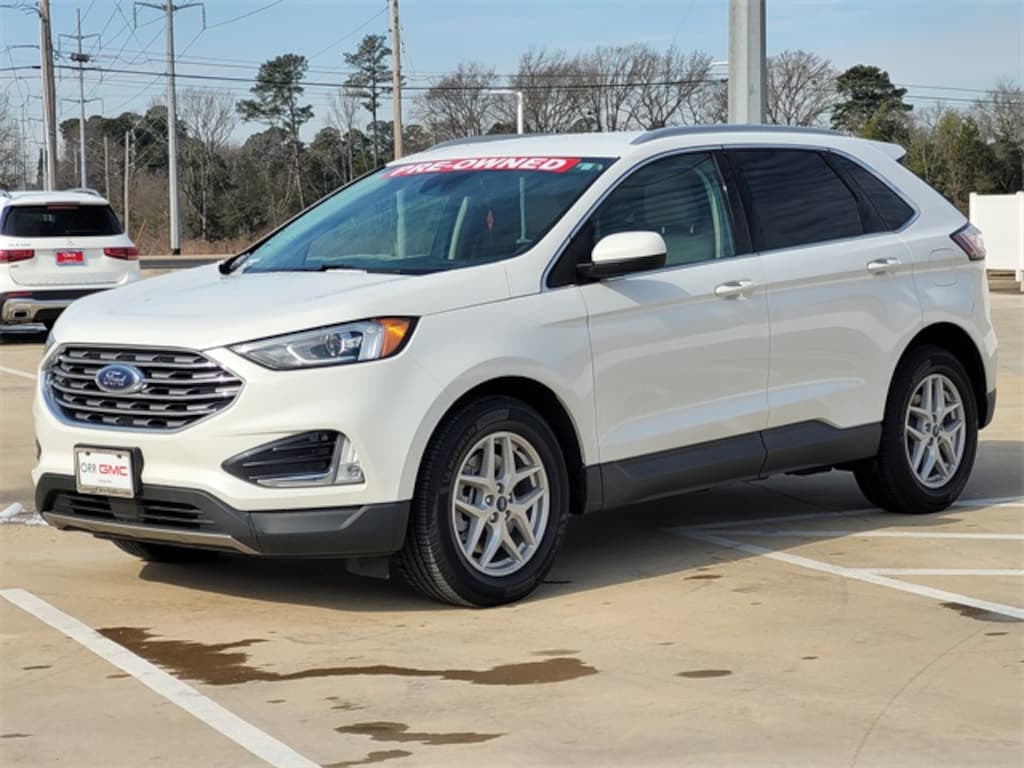 This 2021 Ford Edge comes equipped with Convenience Package (110V/150W AC Power Outlet, Perimeter Alarm, Power Liftgate, Remote Start System, Universal Garage Door Opener (UGDO), and Wireless Charging Pad), Equipment Group 201A, Ford Co-Pilot360 Assist+ (Adaptive Cruise Control w/Stop & Go, Connected Built-In Navigation, Evasive Steering Assist, and Lane Centering), 3.80 Axle Ratio, 4-Wheel Disc Brakes, 6 Speakers, ABS brakes, ActiveX Seating Material Heated Bucket Seats, Air Conditioning, Alloy wheels, AM/FM radio: SiriusXM with 360L, Auto High-beam Headlights, Auto-dimming Rear-View mirror, Automatic temperature control, Brake assist, Bumpers: body-color, Compass, Delay-off headlights, Driver door bin, Driver vanity mirror, Dual front impact airbags, Dual front side impact airbags, Electronic Stability Control, Emergency communication system: SYNC 4 911 Assist, FordPass Connect, Four wheel independent suspension, Front anti-roll bar, Front Bucket Seats, Front Center Armrest w/Storage, Front dual zone A/C, Front fog lights, Front reading lights, Fully automatic headlights, Heated door mirrors, Heated front seats, Heated Steering Wheel, Illuminated entry, Knee airbag, Low tire pressure warning, Occupant sensing airbag, Outside temperature display, Overhead airbag, Overhead console, Panic alarm, Passenger door bin, Passenger vanity mirror, Power door mirrors, Power driver seat, Power passenger seat, Power steering, Power windows, Radio: AM/FM Stereo/MP3 Capable, Rear anti-roll bar, Rear reading lights, Rear seat center armrest, Rear window defroster, Rear window wiper, Remote keyless entry, Silver Roof-Rack Side Rails, SiriusXM w/360L, Speed control, Speed-Sensitive Wipers, Split folding rear seat, Spoiler, Steering wheel mounted audio controls, SYNC 4A w/Enhanced Voice Recognition, Tachometer, Telescoping steering wheel, Tilt steering wheel, Traction control, Trip computer, Variably intermittent wipers, and Wheels: 18" Sparkle Silver-Painted Aluminum. CARFAX One-Owner. Clean CARFAX. 21/29 City/Highway MPG One Owner Carfax, 110V/150W AC Power Outlet, Adaptive Cruise Control w/Stop & Go, Connected Built-In Navigation, Convenience Package, Equipment Group 201A, Evasive Steering Assist, Ford Co-Pilot360 Assist+, Lane Centering, Perimeter Alarm, Power Liftgate, Remote Start System, Universal Garage Door Opener (UGDO), Wireless Charging Pad.