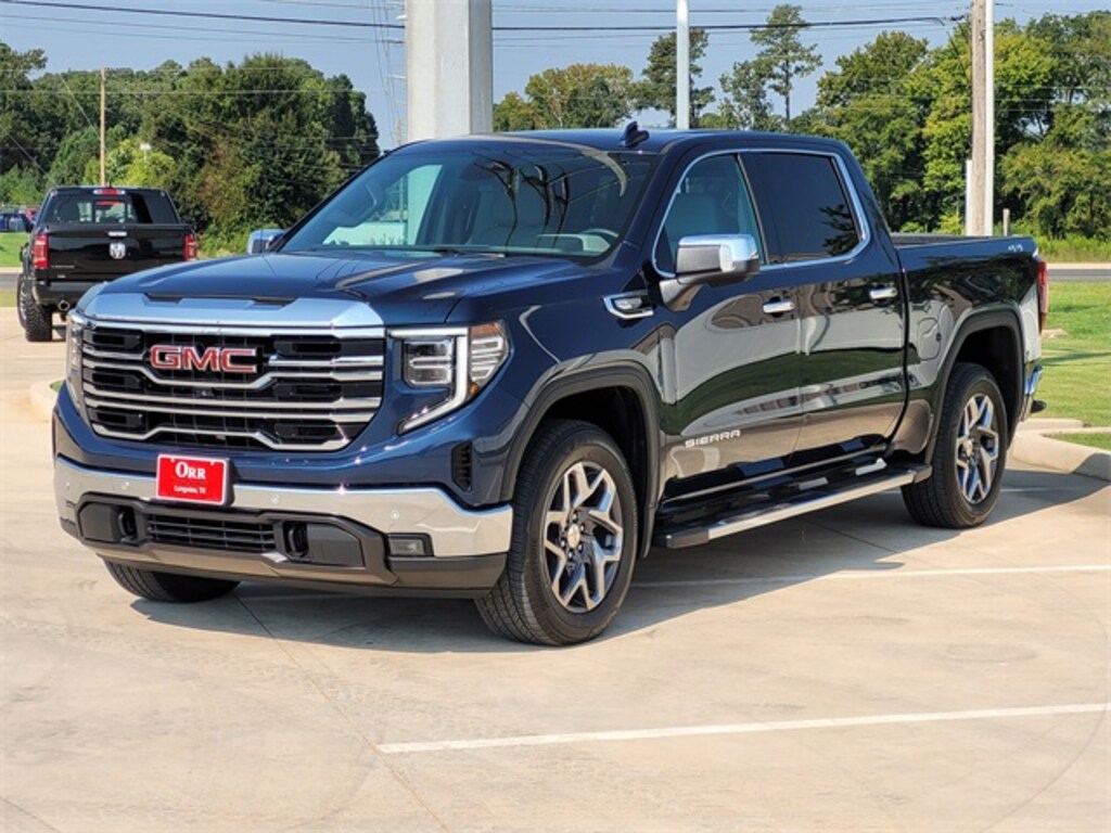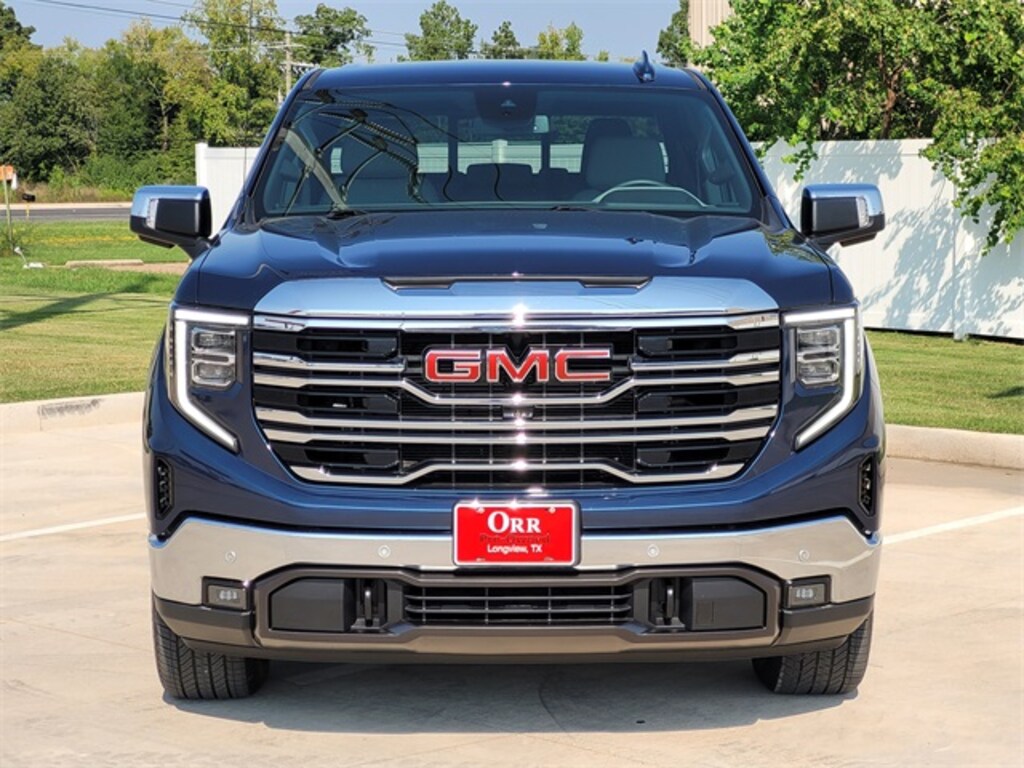 This 2023 GMC Sierra 1500 comes equipped with High Capacity Suspension Package, Max Trailering Package (Enhanced Cooling Radiator, Heavier Duty Rear Springs, and Increased RGAWR), Preferred Equipment Group 4SA (120-Volt Instrument Panel Power Outlet, 170 Amp Alternator, 2 Charge/Data USB Ports, 2 Type-C Charge-Only Rear USB Ports, 6-Speaker Audio System Feature, Auto-Locking Rear Differential, Auxiliary External Transmission Oil Cooler, Chrome Header & Chrome Grille Insert Bars, Color-Keyed Carpeting Floor Covering, Compass, Deep-Tinted Glass, Electric Rear-Window Defogger, Electrical Steering Column Lock, Front Frame-Mounted Black Recovery Hooks, Front Rainsensing Wipers, GMC Connected Access Capable, HD Rear Vision Camera, Keyless Open & Start, LED Cargo Area Lighting, Manual Tilt-Wheel & Telescoping Steering Column, OnStar & GMC Connected Services Capable, Perimeter Lighting, Power Door Locks, Power Front Passenger Windows w/Express Up/Down, Power Front Windows w/Driver Express Up/Down, Power Rear Windows w/Express Down, Push Button Start, Rear Wheelhouse Liners, Remote Vehicle Starter System, SiriusXM w/360L, Steering Wheel Audio Controls, Theft Deterrent System (Unauthorized Entry), Wi-Fi Hotspot Capable, Wireless Phone Projection, and 120-Volt Bed Mounted Power Outlet), ProGrade Trailering System (Hitch Guidance w/Hitch View, In-Vehicle Trailering App, and Integrated Trailer Brake Controller), Sierra Safety Plus Package (HD Surround Vision, Rear Cross Traffic Braking, Rear Pedestrian Detection, Safety Alert Seat, Trailer Camera Provisions, Trailer Side Blind Zone Alert, and Ultrasonic Front & Rear Park Assist), SLT Convenience Package (Floor-Mounted Center Console, Front Bucket Seats, Power Rake & Telescoping Steering Column, Premium Bose 7-Speaker Sound System, Ventilated Driver & Front Passenger Seats, Wireless Charging, 2 Charge/Data USB Ports Inside Center Console, and Electronic Precision Shift), SLT Preferred Package (Adaptive Cruise Control, Heated 2nd Row Outboard Seats, Power Sliding Rear Window w/Rear Defogger, and Universal Home Remote), Standard Suspension Package, Texas Edition SLT Premium Plus Package (20" Polished Aluminum Wheels, Chrome Wheel To Wheel Assist Steps, Spray-On Pickup Bed Liner w/GMC Logo, and Texas Edition Badging), Trailering Package (Hitch Guidance), 10-Speed Automatic, 4WD, Dark Walnut/Slate Leather, Navigation System, 10-Way Power Driver Seat Adjuster w/Lumbar, 10-Way Power Passenger Seat Adjuster w/Lumbar, 220 Amp Alternator, 3.23 Rear Axle Ratio, 3.42 Rear Axle Ratio, 4-Wheel Disc Brakes, 6 Speakers, ABS brakes, Air Conditioning, Alloy wheels, AM/FM radio, Apple CarPlay/Android Auto, Auto High-beam Headlights, Auto-dimming door mirrors, Auto-dimming Rear-View mirror, Automatic Emergency Braking, Automatic temperature control, Brake assist, Buckle to Drive, Bumpers: chrome, Delay-off headlights, Driver door bin, Driver Memory, Driver vanity mirror, Dual Exhaust System, Dual front impact airbags, Dual front side impact airbags, Electronic Stability Control, Emergency communication system: OnStar and GMC connected services capable, Following Distance Indicator, Forward Collision Alert, Front 40/20/40 Split-Bench Seat, Front anti-roll bar, Front Center Armrest w/Storage, Front dual zone A/C, Front fog lights, Front Pedestrian Braking, Front reading lights, Front wheel independent suspension, Fully automatic headlights, Heated door mirrors, Heated Driver & Front Outboard Passenger Seating, Heated front seats, Heated steering wheel, Illuminated entry, IntelliBeam Automatic High Beam On/Off, Lane Keep Assist w/Lane Departure Warning, Low tire pressure warning, Memory seat, Not Equipped w/Steering Column Lock, Occupant sensing airbag, Outside temperature display, Overhead airbag, Overhead console, Panic alarm, Passenger door bin, Passenger vanity mirror, Perf Leather-Appointed Front Outboard Seat Trim, Power door mirrors, Power driver seat, Power passenger seat, Power steering, Power windows,