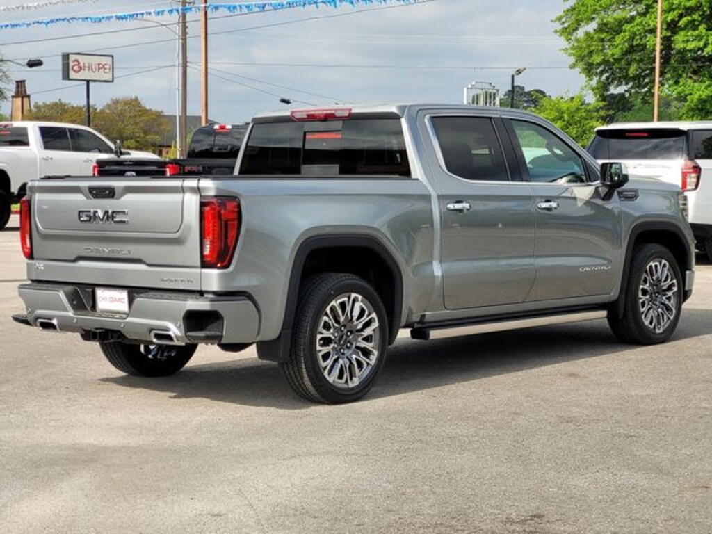 This 2025 GMC Sierra 1500 comes equipped with Preferred Equipment Group 5SB (120-Volt Interior Power Outlet, 2 Charge/Data USB Ports Inside Center Console, 2 Type-C Charge-Only Rear USB Ports, 2 USB Ports, Auto-Locking Rear Differential, Bed View Camera, Bose Premium Series w/12-Speaker System, Chrome Recovery Hooks, Color-Keyed Carpeting Floor Covering, Deep-Tinted Glass, Electric Rear-Window Defogger, Floor-Mounted Center Console, Front Rain-Sensing Wipers, HD Surround Vision, Heated 2nd Row Outboard Seats, Heated Driver & Front Outboard Passenger Seating, Heavy-Duty Air Filter, High Gloss Black Header w/Signature Denali Grille, Hill Descent Control, Hitch View, In-Vehicle Trailering System App, Integrated Trailer Brake Controller, Keyless Open & Start, LED Cargo Area Lighting, Multicolor 15" Diagonal Head-Up Display, MultiPro Tailgate Audio System by Kicker (LPO), OnStar Services Capable, Perimeter Lighting, Power Door Locks, Power Front Passenger Windows w/Express Up/Down, Power Front Windows w/Driver Express Up/Down, Power Rake & Telescoping Steering Column, Power Rear Windows w/Express Down, Power Sliding Rear Window w/Rear Defogger, Power Sunroof, Push Button Start, Rear Cross Traffic Braking, Rear Pedestrian Detection, Rear Wheelhouse Liners, Remote Vehicle Starter System, SiriusXM w/360L Trial Subscription, Spray-On Pickup Bedliner w/GMC Logo, Steering Wheel Audio Controls, Theft Deterrent System (Unauthorized Entry), Trailer Camera Provisions, Trailer Side Blind Zone Alert, Trailer Tire Pressure Monitor System, Ultrasonic Front & Rear Park Assist, Universal Home Remote, Ventilated Driver & Front Passenger Seats, Wi-Fi Hotspot Capable, Wireless Charging, and 120-Volt Bed Mounted Power Outlet), Trailering Package (Hitch Guidance), 10-Speed Automatic, 4WD, Alpine Umber Leather, Navigation System, 12 Speakers, 16-Way Power Driver Seat Adjuster w/Lumbar, 16-Way Power Passenger Seat Adjuster w/Lumbar, 170 Amp Alternator, 3.23 Rear Axle Ratio, 4-Wheel Disc Brakes, ABS brakes, Adaptive suspension, Air Conditioning, Alloy wheels, AM/FM radio: SiriusXM with 360L, Apple CarPlay/Android Auto, Auto High-beam Headlights, Auto-dimming door mirrors, Auto-dimming Rear-View mirror, Automatic temperature control, Brake assist, Buckle to Drive, Bumpers: body-color, Carbon Fiber Composite Bed, Compass, Delay-off headlights, Denali Premium Suspension w/Adaptive Ride Control, Driver door bin, Driver Memory, Driver vanity mirror, Dual Active Exhaust, Dual front impact airbags, Dual front side impact airbags, Electronic Stability Control, Emergency communication system: OnStar, Enhanced Automatic Emergency Braking, Following Distance Indicator, Forward Collision Alert, Front anti-roll bar, Front Bucket Seats, Front Center Armrest, Front dual zone A/C, Front fog lights, Front License Plate Kit, Front Pedestrian Braking, Front reading lights, Front wheel independent suspension, Full Grain Leather Seat Trim, Fully automatic headlights, Garage door transmitter, Genuine wood console insert, Genuine wood dashboard insert, Genuine wood door panel insert, Heads-Up Display, Heated door mirrors, Heated front seats, Heated rear seats, Heated steering wheel, Illuminated entry, IntelliBeam Automatic High Beam On/Off, Low tire pressure warning, Memory seat, Occupant sensing airbag, Outside temperature display, Overhead airbag, Overhead console, Panic alarm, Passenger door bin, Passenger vanity mirror, Power door mirrors, Power driver seat, Power moonroof, Power passenger seat, Power steering, Power windows, Radio data system, Radio: Premium GMC Infotainment Audio System, Rain sensing wipers, Rear reading lights, Rear seat center armrest, Rear step bumper, Rear window defroster, Remote keyless entry, Safety Alert Seat, Security system, Speed control, Speed-sensing steering, Split folding rear seat, Steering wheel mounted audio controls, Super Cruise, Tachometer, Telescoping steering wheel, Tilt steering wheel, Traction control, Trip computer, Variably inte