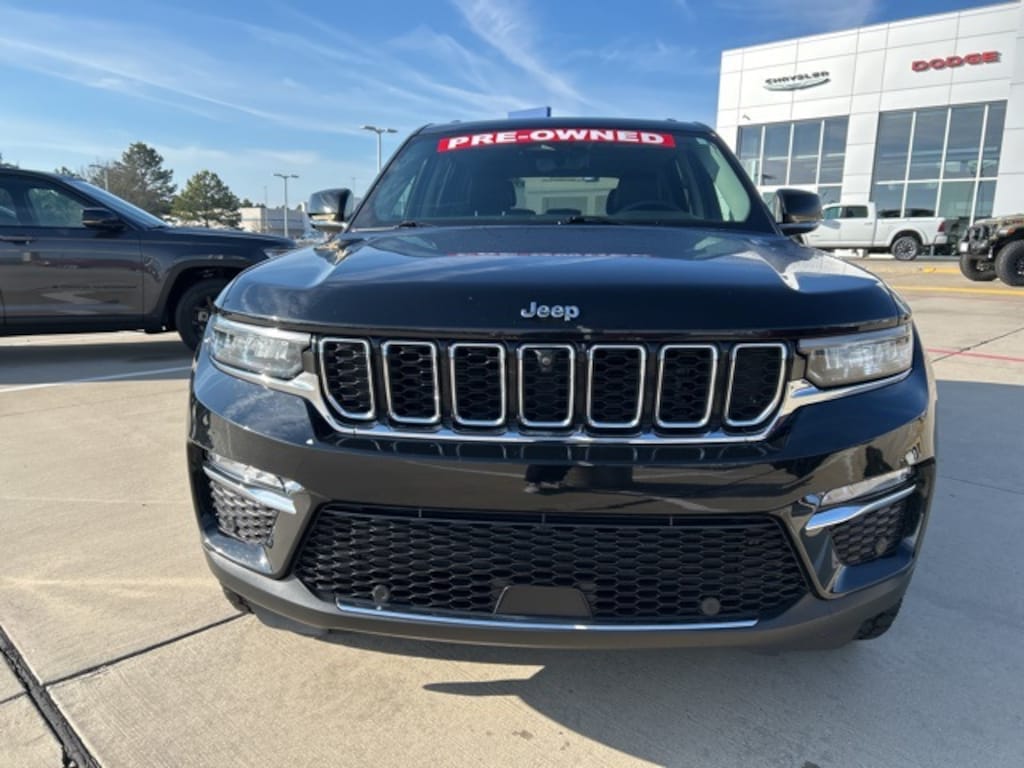 CARFAX One-Owner. Classic CDJR in Texarkana is proud to offer this stunning 2022 Jeep Grand Cherokee in Diamond Black Crystal Pearlcoat. This 2022 Jeep Grand Cherokee comes with the following features; Luxury Tech Group II (2nd-Row Manual Window Shades, Auto-Dimming Exterior Driver Mirror, Capri Leather Seats w/Perforated Inserts, Integrated Off-Road Camera, Intersection Collision Assist System, Memory Steering Column, ParkSense Front/Rear Park Assist w/Stop, Passive Entry - Front/Rear Doors, Liftgate, Power Tilt/Telescope Steering Column, Rain Sensitive Windshield Wipers, Rear Back Up Camera Washer, Rearview Autodim Digital Display Mirror, Surround View Camera System, Ventilated Front Seats, and Wireless Charging Pad), Quick Order Package 27F, 2.0L I4 DOHC, 4WD, 10 Speakers, 10.1" Touchscreen Display, 3.70 Rear Axle Ratio, 4-Wheel Disc Brakes, 4G LTE Wi-Fi Hot Spot, ABS brakes, Air Conditioning, All Radio Equipped Vehicles, Alloy wheels, AM/FM radio: SiriusXM with 360L, Anti-whiplash front head restraints, Apple CarPlay, Audio memory, Auto High-beam Headlights, Automatic temperature control, Brake assist, Bumpers: body-color, Capri Leather Seats, Compass, Connected Travel & Traffic Services, Connectivity - US/Canada, Delay-off headlights, Disassociated Touchscreen Display, Driver door bin, Driver vanity mirror, Dual front impact airbags, Dual front side impact airbags, Dual-Pane Panoramic Sunroof (DISC), Electronic Stability Control, For Details, Visit DriveUconnect.com, For More Info, Call 800-643-2112, Four wheel independent suspension, Front anti-roll bar, Front Bucket Seats, Front Center Armrest w/Storage, Front dual zone A/C, Front fog lights, Front Passenger Interactive Display, Front reading lights, Fully automatic headlights, Garage door transmitter, Global Telematics Box Module (TBM), Google Android Auto, GPS Antenna Input, GPS Navigation, HD Radio, Heated door mirrors, Heated front seats, Heated rear seats, Heated steering wheel, Heavy Duty Suspension, Illuminated entry, Integrated Center Stack Radio, Integrated Voice Command w/Bluetooth, Knee airbag, Leather steering wheel, Low tire pressure warning, Memory seat, Occupant sensing airbag, Outside temperature display, Overhead airbag, Overhead console, Panic alarm, ParkView Rear Back-Up Camera, Passenger door bin, Passenger vanity mirror, Power door mirrors, Power driver seat, Power Liftgate, Power passenger seat, Power steering, Power windows, Pur Wrapped Instrument Panel, Radio data system, Radio: Uconnect 5 Nav w/10.1" Display, Radio: Uconnect 5 w/8.4" Display, Rear anti-roll bar, Rear reading lights, Rear window defroster, Rear window wiper, Remote keyless entry, Roof rack: rails only, Security system, SiriusXM Radio Service, SiriusXM Satellite Radio, SiriusXM w/360L, Speed control, Speed-Sensitive Wipers, Split folding rear seat, Spoiler, Steering wheel mounted audio controls, Tachometer, Telescoping steering wheel, Tilt steering wheel, Traction control, Trip computer, Turn signal indicator mirrors, USB Host Flip, Variably intermittent wipers, Voltmeter, and Wheels: 18" x 8" Fully Painted AluminuM. 2.0L I4 DOHC, 4WD.