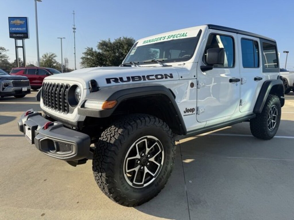 CARFAX One-Owner. Clean CARFAX. Bright White Clearcoat 2024 Jeep Wrangler Rubicon 3.6L V6 24V VVT 4WD 8-Speed Automatic The 2024 Jeep Wrangler comes with the following features; Quick Order Package 24R Rubicon, 12.3 Touchscreen Display, 4-Wheel Disc Brakes, 4.10 Rear Axle Ratio, 8 Speakers, 97 MPH Vehicle Max Speed Calibration, ABS brakes, Air Conditioning, Alloy wheels, AM/FM radio: SiriusXM, Apple CarPlay, Apple CarPlay/Android Auto, Automatic temperature control, Aux Battery, Black 3-Piece Hard Top, Brake assist, Cloth Low-Back Bucket Seats, Compass, Connectivity - US/Canada, Delay-off headlights, Disassociated Touchscreen Display, Driver door bin, Driver vanity mirror, Dual front impact airbags, Dual front side impact airbags, Electronic Stability Control, Emergency communication system: Jeep Connect, Freedom Panel Storage Bag, Front anti-roll bar, Front Bucket Seats, Front Center Armrest w/Storage, Front dual zone A/C, Front fog lights, Front License Plate Bracket, Front reading lights, Fully automatic headlights, Google Android Auto, Heated door mirrors, Illuminated entry, Integrated Center Stack Radio, Integrated roll-over protection, Integrated Voice Command w/Bluetooth, Low tire pressure warning, No Soft Top, Non-Lock Fuel Cap w/o Discriminator, Occupant sensing airbag, Outside temperature display, Overhead airbag, Panic alarm, ParkView Rear Back-Up Camera, Passenger door bin, Passenger vanity mirror, Performance Suspension, Power door mirrors, Power steering, Power windows, Radio data system, Radio: Uconnect 5 w/12.3 Display, Rear anti-roll bar, Rear reading lights, Rear Window Defroster, Rear Window Wiper/Washer, Remote keyless entry, Security system, Speed control, Split folding rear seat, Steering wheel mounted audio controls, Stop-Start Dual Battery System, Tachometer, Telescoping steering wheel, Tilt steering wheel, Traction control, Trip computer, Variably intermittent wipers, Voltmeter, and Wheels: 17 x 7.5 Machined/Painted Black.
