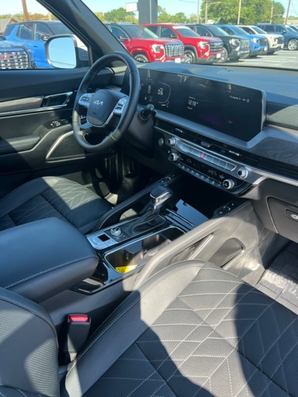 This 2024 Kia Telluride comes equipped with 3.648 Axle Ratio, 3rd row seats: split-bench, 4-Wheel Disc Brakes, 6 Speakers, ABS brakes, Air Conditioning, Alloy wheels, AM/FM radio: SiriusXM, Apple CarPlay & Android Auto, Auto High-beam Headlights, Auto-dimming Rear-View mirror, Auto-leveling suspension, Automatic temperature control, Brake assist, Bumpers: body-color, Cargo Cover, Cargo Tray Seat Back, Carpet Floor Mats, Compass, Cross Bars X-Line, Delay-off headlights, Driver door bin, Driver vanity mirror, Dual front impact airbags, Dual front side impact airbags, Electronic Stability Control, Emergency communication system: 911 Connect, Exterior Parking Camera Rear, Four wheel independent suspension, Front anti-roll bar, Front Bucket Seats, Front Center Armrest, Front dual zone A/C, Front reading lights, Fully automatic headlights, Heated & Ventilated Front Bucket Seats, Heated door mirrors, Heated front seats, Heated steering wheel, Hybrid Cargo Net, Illuminated entry, Knee airbag, Leather Seat Trim, Leather Shift Knob, Leather steering wheel, Low tire pressure warning, Navigation System, Occupant sensing airbag, Outside temperature display, Overhead airbag, Overhead console, Panic alarm, Passenger door bin, Passenger vanity mirror, Power door mirrors, Power driver seat, Power Liftgate, Power moonroof, Power passenger seat, Power steering, Power windows, Radio data system, Radio: AM/FM Display Audio System, Rear air conditioning, Rear anti-roll bar, Rear audio controls, Rear reading lights, Rear side impact airbag, Rear window defroster, Rear window wiper, Reclining 3rd row seat, Remote keyless entry, Roof rack: rails only, Security system, Smart Key w/ Push Button and Remote Start, Speed control, Speed-sensing steering, Split folding rear seat, Spoiler, Steering wheel mounted audio controls, Tachometer, Telescoping steering wheel, Tilt steering wheel, Traction control, Trip computer, Turn signal indicator mirrors, Variably intermittent wipers, Ventilated front seats, and Wheels: 20" x 7.5" Black Finish X-LINE Exclusive. Clean CARFAX.