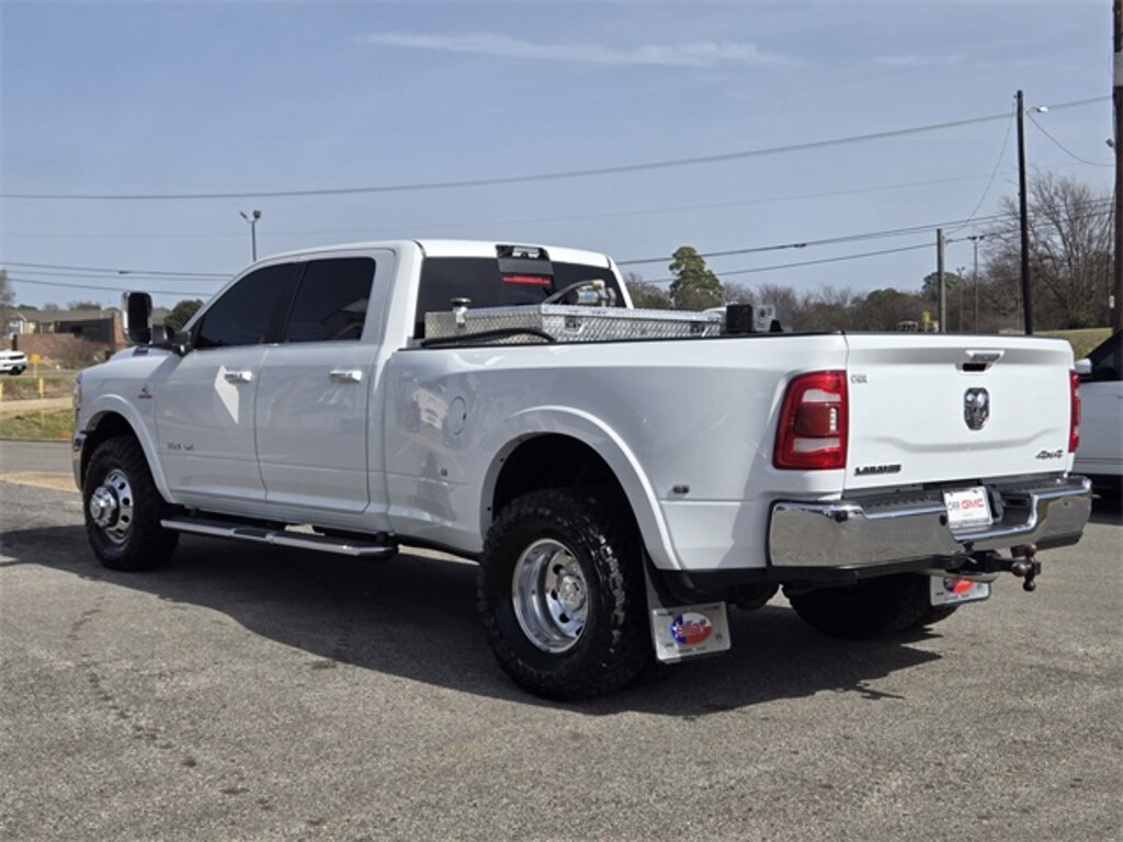 This 2021 Ram 3500 comes equipped with Bed Utility Group (LED Bed Lighting, MOPAR Deployable Bed Step, and MOPAR Spray In Bedliner), Chrome Appearance Group (Chrome Belt Moldings and Chrome Tow Hooks), Laramie Level An Equipment Group (2nd Row In Floor Storage Bins, Auto High Beam Headlamp Control, Exterior Mirrors w/Memory, Foam Bottle Insert (Door Trim Panel), Mirror-Mounted Aux Reverse Lamps, Power Adjustable Convex Aux Mirrors, Power Adjustable Pedals w/Memory, Power Chrome Tow Mirrors w/Convex Spotter & Memory, Radio/Driver Seat/Mirrors/Pedals Memory, Rain Sensitive Windshield Wipers, Remote Tailgate Release, and Ventilated Front Seats), Quick Order Package 2HH Laramie, Safety Group B (Adaptive Cruise Control w/Stop, Adaptive Steering System, Digital Rearview Mirror, Full Speed Forward Collision Warning Plus, and Lane Keep Assist), Towing Technology Group B (CTR Stop Lamp w/Cargo View Camera, Surround View Camera System, and Trailer Reverse Guidance), GPS Navigation, #1 Seat Foam Cushion, 1-Year SiriusXM Guardian Trial, 10 Speakers, 115V Auxiliary Rear Power Outlet, 12" Touchscreen Display, 2 Way Rear Headrest Seat, 220 Amp Alternator, 4 Way Front Headrests, 4-Wheel Disc Brakes, 4G LTE Wi-Fi Hot Spot, 5-Year SiriusXM Traffic Service, 5-Year SiriusXM Travel Link Service, 50 Gallon Fuel Tank, 5th Wheel/Gooseneck Towing Prep Group, 6000# Front Axle w/Hub Ext, 8.4" Touchscreen Display, ABS brakes, Active Noise Control System, Adjustable pedals, Air Conditioning, Alloy wheels, AM/FM radio: SiriusXM, Apple CarPlay, Apple CarPlay/Android Auto, Auto-dimming Rear-View mirror, Automatic temperature control, Box & Rear Fender Clearance Lamps, Brake assist, Bumpers: chrome, Center Hub, Chrome Flat Cab-Length Side Steps, Clearance Lamps, Compass, Delay-off headlights, Disassociated Touchscreen Display, Driver door bin, Driver vanity mirror, Dual front impact airbags, Dual front side impact airbags, Dual Rear Wheels, Electronic Stability Control, Electronically Controlled Throttle, Folding Flat Load Floor Storage, For Details Visit DriveUconnect.com, Front anti-roll bar, Front Bumper Sight Shields, Front Center Armrest w/Storage, Front dual zone A/C, Front fog lights, Front License Plate Bracket, Front reading lights, Front Seat Back Map Pockets, Fully automatic headlights, Garage door transmitter, Google Android Auto, GPS Antenna Input, HD Radio, Heated door mirrors, Heated Front Seats, Heated front seats, Heated Steering Wheel, Heated steering wheel, High Back Seats, Illuminated entry, Integrated Center Stack Radio, Integrated Voice Command w/Bluetooth, Leather steering wheel, Leather Trim 40/20/40 Bench Seat, Low tire pressure warning, MOPAR Front & Rear Rubber Floor Mats, Occupant sensing airbag, Outside temperature display, Overhead airbag, Overhead console, Panic alarm, ParkView Rear Back-Up Camera, Passenger door bin, Passenger vanity mirror, Power 8-Way Adjustable Passenger Seat, Power Adjust 8-Way Driver Seat, Power door mirrors, Power driver seat, Power passenger seat, Power steering, Power windows, Radio data system, Radio: Uconnect 12.0 w/Navigation, Radio: Uconnect 4 w/8.4" Display, Rear 60/40 Folding Seat, Rear reading lights, Rear seat center armrest, Rear step bumper, Rear Wheelhouse Liners, Rear window defroster, Remote keyless entry, Security system, Selectable Tire Fill Alert, SiriusXM Satellite Radio, SiriusXM Traffic Plus, SiriusXM Travel Link, SiriusXM w/360L, Speed control, Split folding rear seat, Steering wheel mounted audio controls, Tachometer, Tilt steering wheel, Tip Start, Tire Pressure Monitoring Delete, Traction control, Trip computer, Turn signal indicator mirrors, Variably intermittent wipers, Voltmeter, Wheels: 17" x 6.0" Polished Aluminum, and Wheels: 18" x 8.0" Polished AluminuM. CARFAX One-Owner. Clean CARFAX. One Owner Carfax, 2nd Row In Floor Storage Bins, Adaptive Cruise Control w/Stop, Adaptive Steering System, Auto High Beam Headlamp Control, Bed Utility Group, Chrome Appearance Group, Chrome