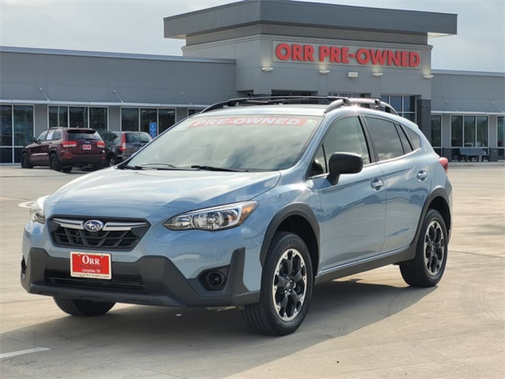 This 2023 Subaru Crosstrek comes equipped with Standard Model, 4 Speakers, 4-Wheel Disc Brakes, 4.44 Axle Ratio, ABS brakes, Air Conditioning, All-Weather Floor Liners, Alloy wheels, AM/FM radio, Anti-whiplash front head restraints, Automatic temperature control, Brake assist, Bumpers: body-color, Cloth Upholstery, Driver door bin, Driver vanity mirror, Dual front impact airbags, Dual front side impact airbags, Electronic Stability Control, Exterior Parking Camera Rear, Four wheel independent suspension, Front anti-roll bar, Front Bucket Seats, Front Center Armrest, Front reading lights, Illuminated entry, Knee airbag, Low tire pressure warning, Occupant sensing airbag, Outside temperature display, Overhead airbag, Overhead console, Panic alarm, Passenger door bin, Passenger vanity mirror, Power door mirrors, Power steering, Power windows, Radio data system, Radio: Subaru STARLINK 6.5" Multimedia System, Rear anti-roll bar, Rear Bumper Cover, Rear window defroster, Rear window wiper, Remote keyless entry, Security system, Speed control, Speed-sensing steering, Split folding rear seat, Spoiler, STARLINK/Apple CarPlay/Android Auto, Steering wheel mounted audio controls, Tachometer, Telescoping steering wheel, Tilt steering wheel, Traction control, Trip computer, Variably intermittent wipers, and Wheels: 17" x 7.0J Alum Alloy Blk w/Machine Finish. CARFAX One-Owner. Clean CARFAX. 22/29 City/Highway MPG One Owner Carfax, Standard Model.