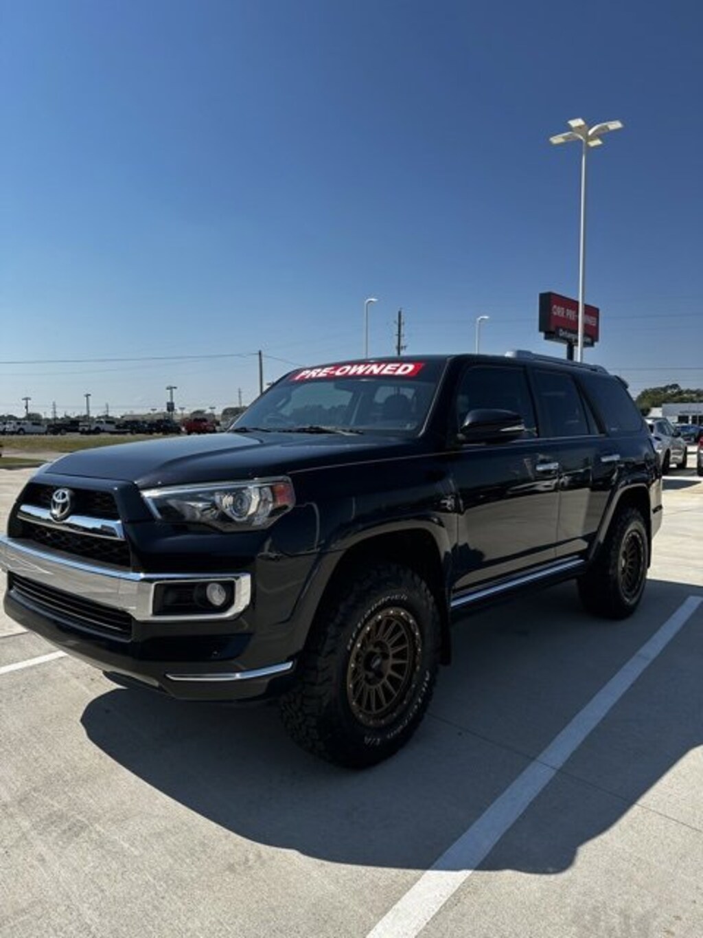 This 2014 Toyota 4Runner comes equipped with Convenience Package (Alloy Wheel Locks, Cargo Cross Bars, and Exhaust Tip), Luxury Package (Auto-Dimming Rear-View Mirror, Body Color Heated Mirrors, Garage Door Opener, Power Tilt & Slide Moonroof w/Sunshade, and Right & Left Individual Air Conditioner), 4WD, Black Leather, Navigation System, 15 Speakers, 20 x 7.5 Unique Dual 6-Spoke Alloy Wheels, 3.727 Axle Ratio, 4-Wheel Disc Brakes, ABS brakes, Air Conditioning, Alloy wheels, AM/FM radio: SiriusXM, Anti-whiplash front head restraints, Auto-dimming Rear-View mirror, Automatic temperature control, Brake assist, Bumpers: body-color, Carpet Floor Mats & Carpet Cargo Mat, CD player, Compass, Delay-off headlights, Driver door bin, Driver vanity mirror, Dual front impact airbags, Dual front side impact airbags, Electronic Stability Control, Emergency communication system: Safety Connect, Exterior Parking Camera Rear, Front anti-roll bar, Front Bucket Seats, Front Center Armrest, Front dual zone A/C, Front fog lights, Front reading lights, Front wheel independent suspension, Fully automatic headlights, Garage door transmitter: HomeLink, Heated door mirrors, Heated front seats, Heated/Ventilated Front Bucket Seats, Illuminated entry, Knee airbag, Leather Seat Trim, Leather Shift Knob, Low tire pressure warning, Memory seat, Mudguards, Occupant sensing airbag, Outside temperature display, Overhead airbag, Overhead console, Panic alarm, Passenger door bin, Passenger vanity mirror, Power door mirrors, Power driver seat, Power moonroof, Power passenger seat, Power steering, Power windows, Radio data system, Radio: Entune Premium JBL Audio with Navigation, Rear anti-roll bar, Rear seat center armrest, Rear window defroster, Rear window wiper, Remote Engine Starter, Remote keyless entry, Roof rack: rails only, Running Boards, Security system, Speed control, Speed-sensing steering, Split folding rear seat, Spoiler, Steering wheel mounted audio controls, Tachometer, Telescoping steering wheel, Tilt steering wheel, Traction control, Trip computer, Turn signal indicator mirrors, Variably intermittent wipers, Ventilated front seats, and Voltmeter. Carfax no accidents, 4WD, Black Leather, Alloy Wheel Locks, Auto-Dimming Rear-View Mirror, Body Color Heated Mirrors, Cargo Cross Bars, Convenience Package, Exhaust Tip, Garage Door Opener, Luxury Package, Navigation System, Power Tilt & Slide Moonroof w/Sunshade, Right & Left Individual Air Conditioner.Attitude Black 2014 Toyota 4Runner Limited 4.0L V6 SMPI DOHC 4WD 5-Speed Automatic with OverdrivePlease see our hundreds of 4.5 Star Reviews on Google and Facebook. We also feature some truly incredible models for you to check out. We have an impressive Pre-Owned inventory that is full of the latest and greatest models, as well as a great selection of New inventory. We will make your purchase smooth and easy and we can provide great financing options on all of our inventory.Awards:* 2014 KBB.com Best Resale Value Awards
